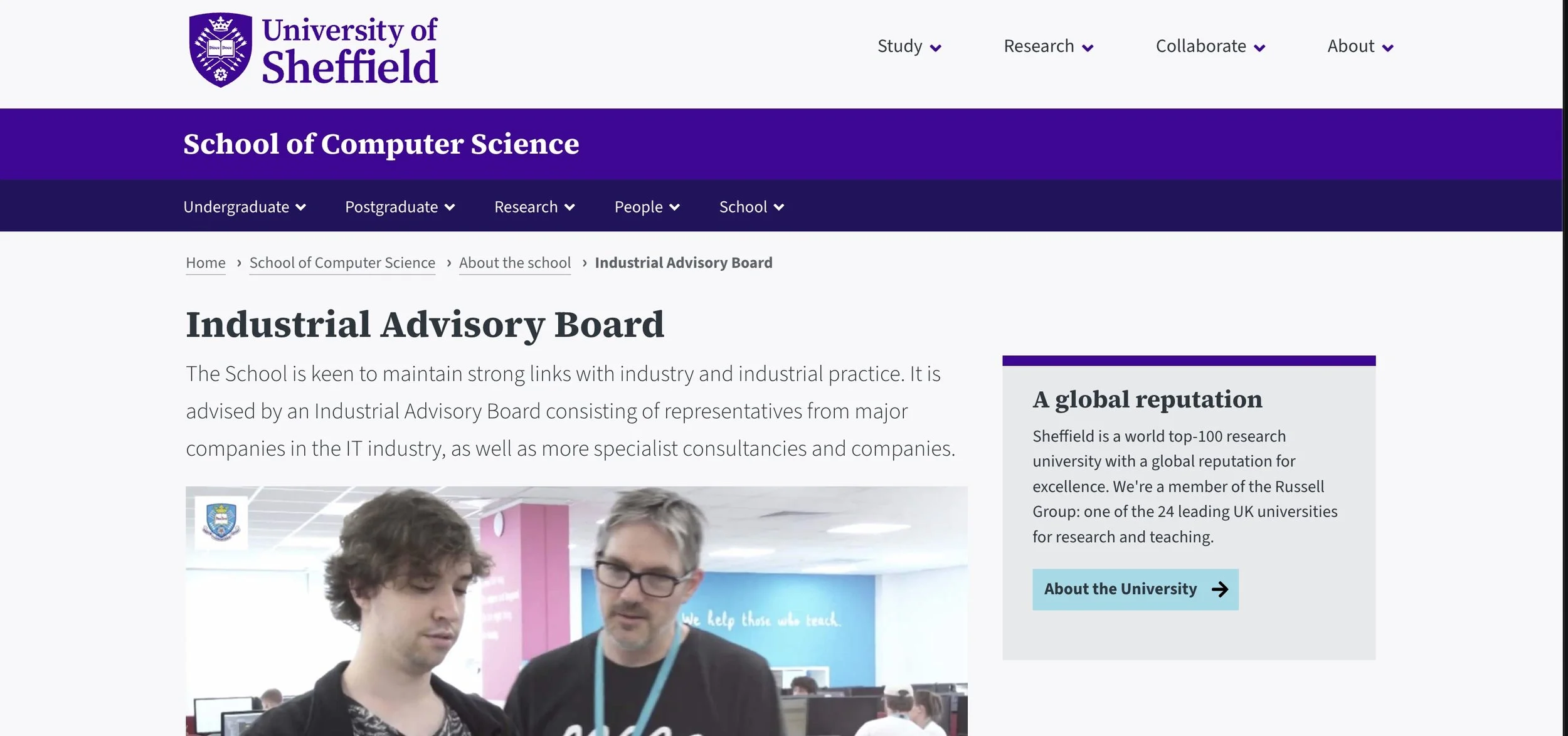 David sits as a member of The University of Sheffield Industrial Advisory Board for the School of Computer Science, within the Faculty of Engineering.
